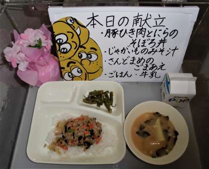 食材には、おもにエネルギーのもとになる黄色の食べ物が6種類、おもに体をつくるもとになる赤色の食べ物が7種類、おもに体の調子を整える緑色の食べ物が7種類使用されています。