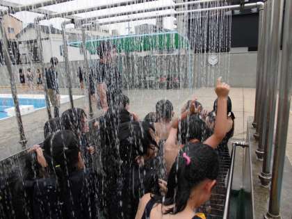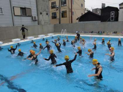 一番初めにプールへ入ったのは2年生。すごく楽しみにしている子が多かったです。「二人組」をつくったり水慣れをしたり、1年のときよりもしっかりできていました。