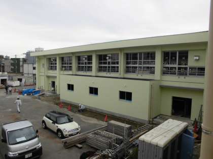 「わっ!すごいできてきたやん。いえーい!」と6年生の子が歓声を上げていました。そう、新体育館の初めての卒業式は、今の6年生となります。