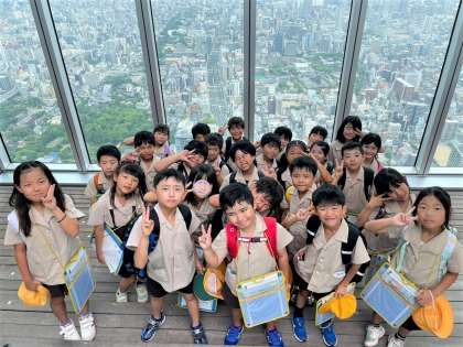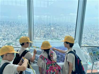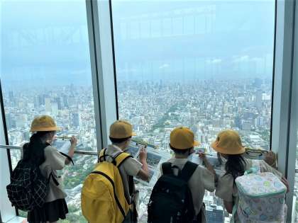 今日は朝から3年生の社会見学で「あべのハルカス」へ行ってきました。