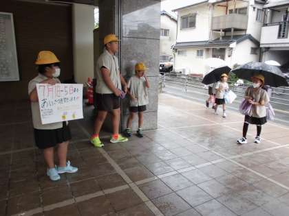 代表委員会の子どもが、玄関であいさつを呼び掛けたり、児童朝会のチームズで知らせたりしました。元気なあいさつの声が玄関に響きました。
