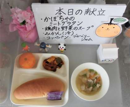 食材には、おもにエネルギーのもとになる黄色の食べ物が6種類、おもに体をつくるもとになる赤色の食べ物が4種類、おもに体の調子を整える緑色の食べ物が7種類使用されています。