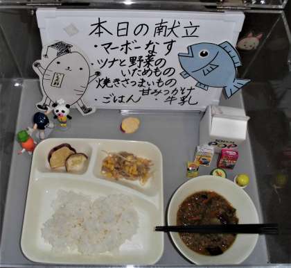 明日の献立は「一口がんもどきと芋のみそ煮」です。