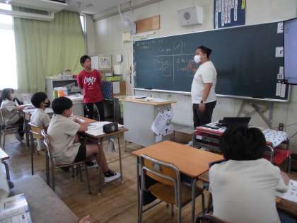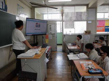 毎週金曜日、5、6年生の外国語の学習では外国人の先生が来てくださいます。3、4年生の外国語活動には隔週です。本場の英語を聞いたり会話したりするとても貴重な時間です。