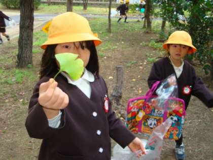黄色や赤に色づいたお気に入りの葉っぱを1人30枚以上集めていました。