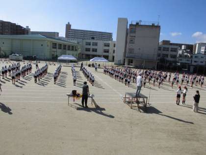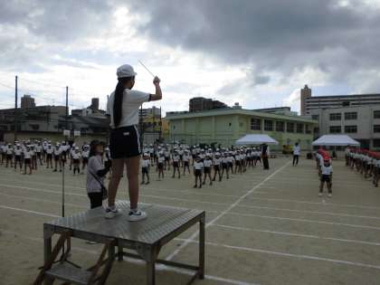今日は「閉会式、校歌を歌う、得点発表、優勝旗・準優勝楯の授与、応援団の声合わせ」の練習をしました。校歌や応援の声など、元気な声が聞こえるようになってきました。明日の全体練習は、開会式と閉会式です。