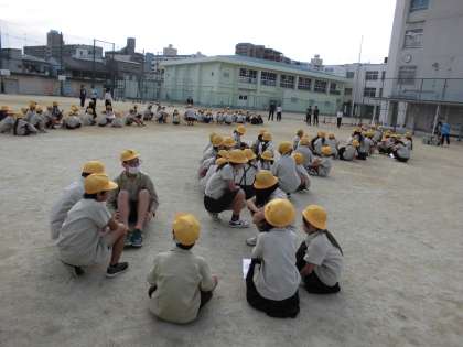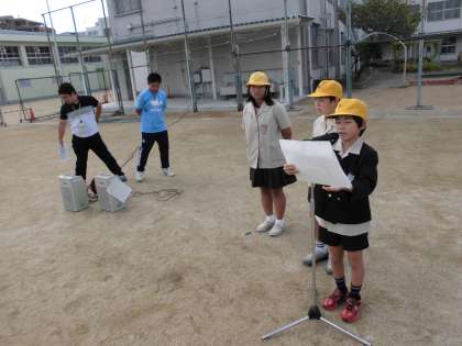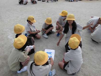 久しぶりの児童集会。「先生クイズ」を運動場でしました。集会委員会児童から問題が出されて、たてわり班のメンバー全員で意見を出し合いました。