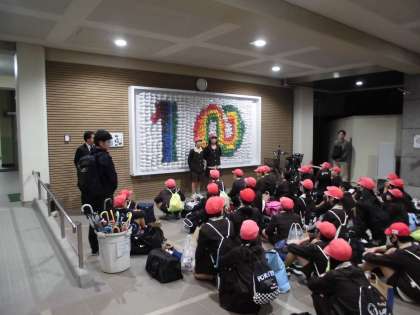渋滞のため予定時刻より1時間以上遅れましたが、6年生の子どもたちは元気に帰ってきました。疲れていても最後までしっかりと帰校式をやり終えました。たくさんのお土産を両手に持っていましたが、家でも土産話に花を咲かせてほしいものです。