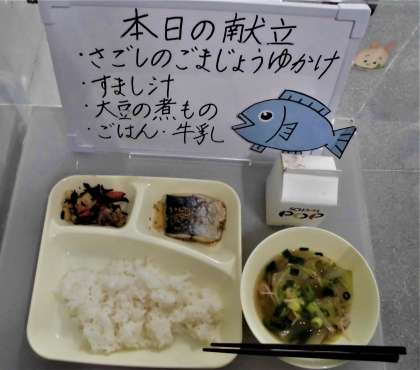 食材には、おもにエネルギーのもとになる黄色の食べ物が3種類、おもに体をつくるもとになる赤色の食べ物が8種類、おもに体の調子を整える緑色の食べ物が5種類使用されています。
