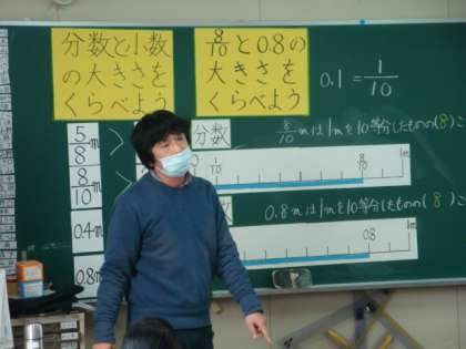 単元は「分数」で、分数と小数の大きさの比べ方を考えました。