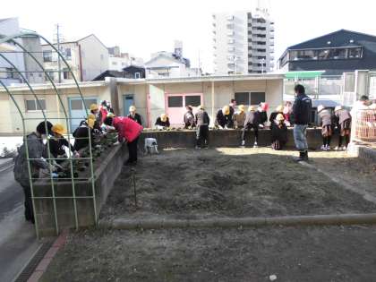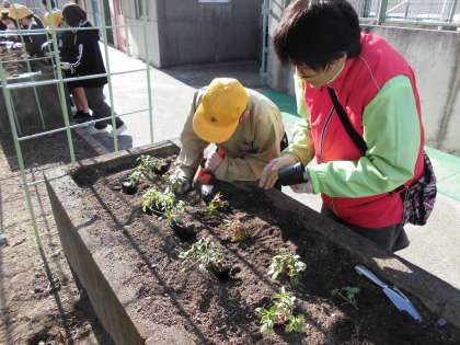 1学期に続き、5、6年生と地域の「花咲かせ隊」の方が、学習園の花壇に苗を植えました。集まった子どもたちは、30人。この日をとても楽しみにしていました。リピーター率が高く、「5年生からずっと参加しているよ!」「地域の人に優しく教えてもらってよかった!」という声が聞かれました。春に花が咲くのが楽しみです。