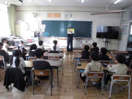 毎月1回、地域の「読み聞かせ隊」の方に、読み聞かせをしていただいています。今日は2学期最終日でした。子どもたちは毎月楽しみにしていて、姿勢よく集中して聞いてる姿が見られます。