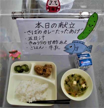 来週27日の献立は「さごしのしょうゆだれかけ」です。