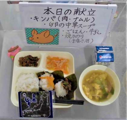 食材には、おもにエネルギーのもとになる黄色の食べ物が5種類、おもに体をつくるもとになる赤色の食べ物が5種類、おもに体の調子を整える緑色の食べ物が8種類使用されています。
