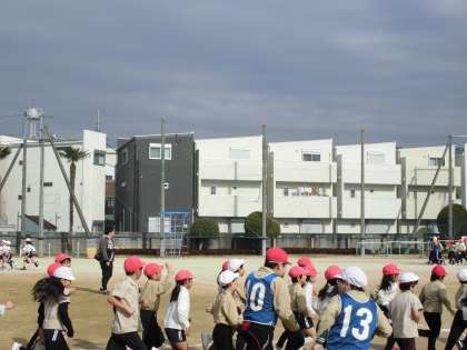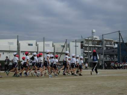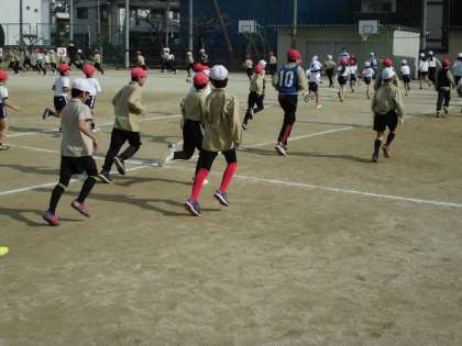 カガリンピック「かけあし」3日目です。走る時間は4分間。6年生の子と話をしました。「何周走った?」「7周も走ったよ」「そういえば、2年生の子が8周走ったって言ってたなあ」「すごい2年生やな!負けられへんわ!」