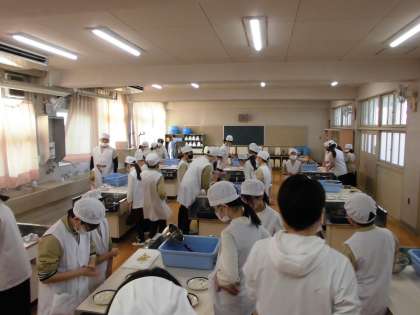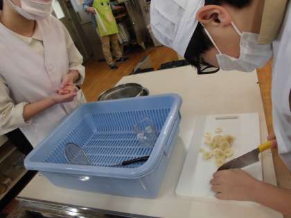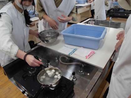 6年生1組・2組合同、最後の調理実習で「白玉だんご」をつくりました。さすが6年生、手際が良いです。「へび年やから白玉でへびつくったわ」「出来栄えはべリーグット!」みんなニコニコ笑顔でした。