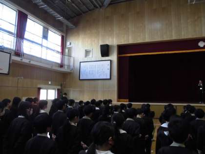今日の児童朝会、校長先生の話は「四季の移り変わり」についてのお話でした。寒い冬もいつかは春になります。春が待ち遠しいですね。