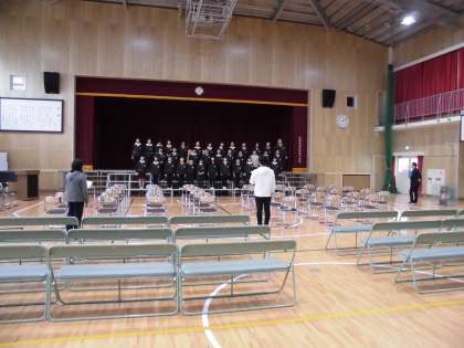 昨日5年生が準備した講堂で、6年生が早速卒業式の練習をしました。