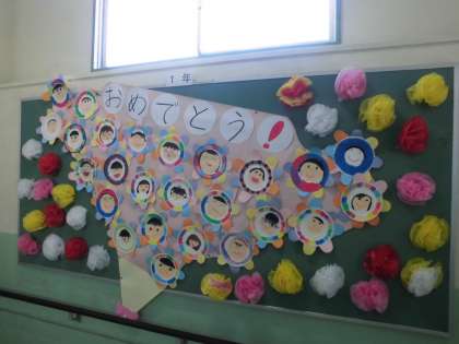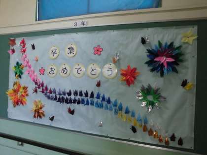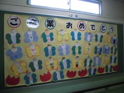 各学年で卒業お祝いの掲示を華やかに作りました。6年生は小学校生活が後4日となりました。