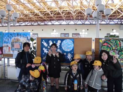 いろいろなお友達の作品を観た後、自分たちが作った作品の前で写真を撮りました。