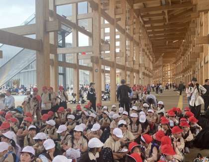 工夫をこらした外観が目をひくパビリオンの間を散策したり、日本の伝統的な工法で作られた万博のシンボル「大屋根リング」を見学したりしました。