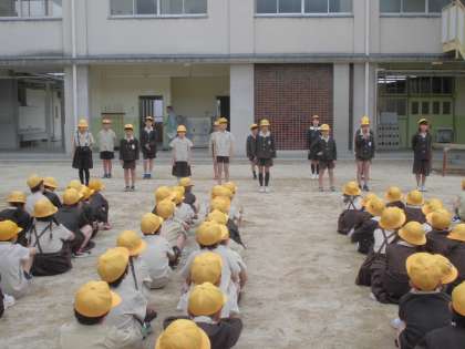 今年度初めての児童集会では、前期の学級代表と各委員会の委員長の自己紹介を行いました。自分の言うセリフを覚えて、「どんな学校にしたいか」を堂々と発表していました。