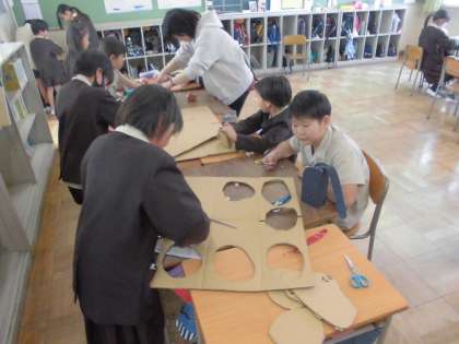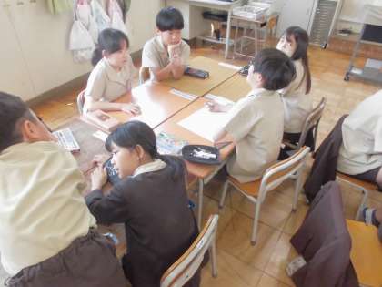 2時間目に、たてわり活動をしました。加賀屋フェスティバルのためにつくるお店の内容を決めていきました。また、お店の準備をすでに行っている班もありました。6年生が班のみんなが活動しやすいように声掛けや説明をしていました。