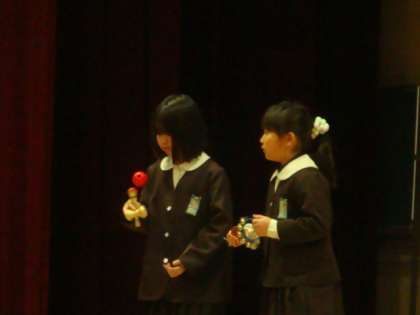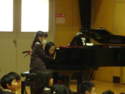 1組目は、2年生が「となりのトトロ」をピアノ、けん玉、カスタネット、すずを使って発表してくれました。