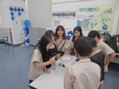 広い施設を見学した後、実際に実験を行い、水が綺麗になる様子を調べました。
