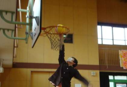 3組目は、6年生がバスケットボールのシュートをしてくれました。