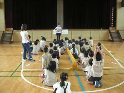 今日の3時間目、ひまわり学級の児童と1年生の児童との交流会がありました。