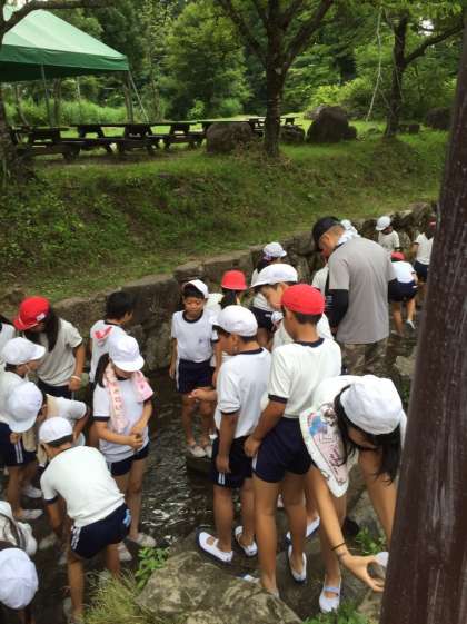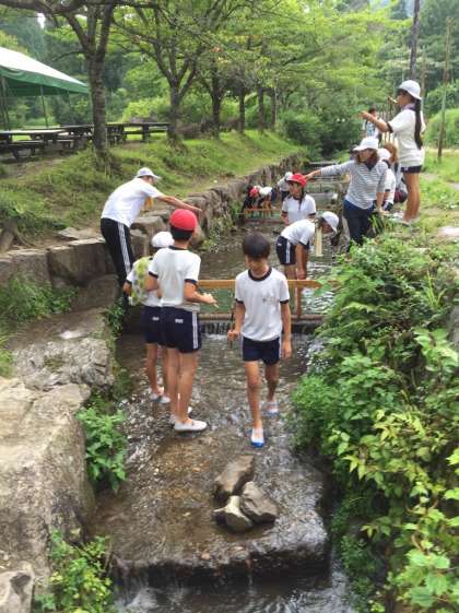 魚つかみが始まりました。水がとても冷たくキャーキャー言いながらつかまえたそうです。