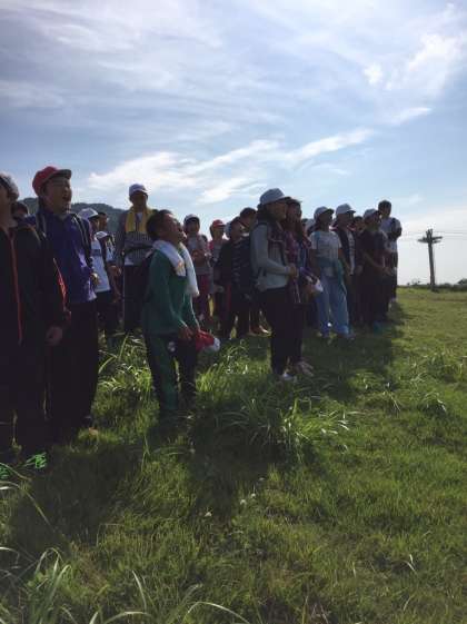 みんなで、山に向かって「ヤッホー」と叫んでみました。
