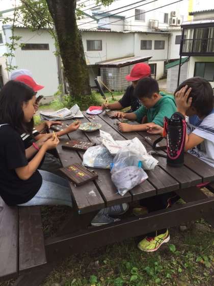 昨日磨いた板に、思い出に残る絵付けをしています。上手に描けているそうですので、お楽しみに!