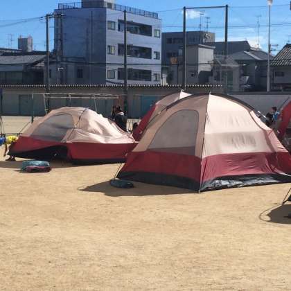 一晩お世話になったテントを協力してお片づけ。この後はレクリエーションです。