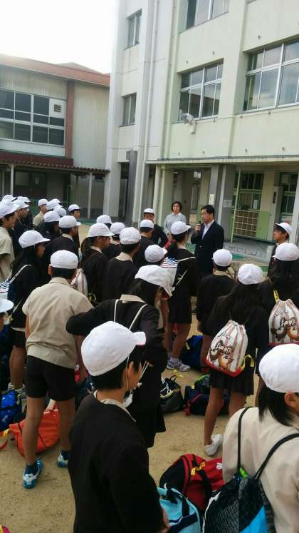 おはようございます。六年生全員が元気に出発しました。この2日間でたくさんの思い出をいっぱい作って、友情を深めてくれることだと思います。
