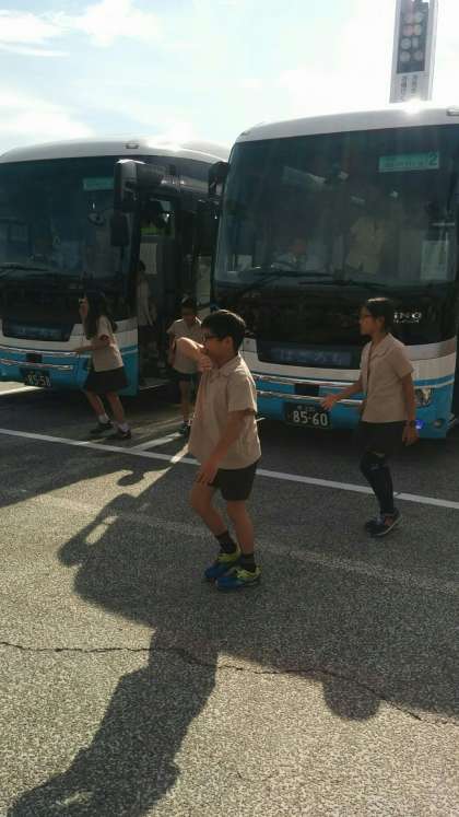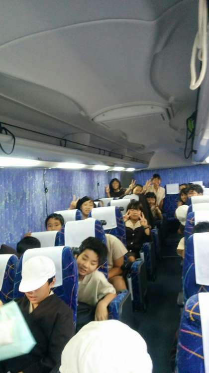 今日から、お世話になります三重県。最初の休憩場所である上野ドライブインに到着しました。バス内では、組体で使った音楽が流れるとみんなで「キミだけの〜」と大合唱です。