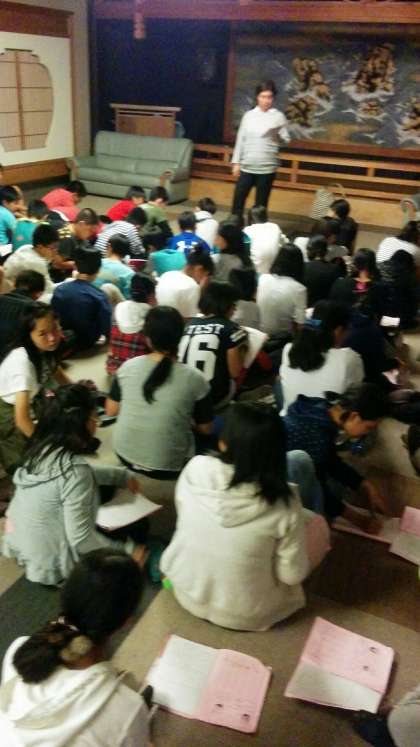 本日、最後の活動です。全員で今日の振り返りをしました。後は、ゆっくり就寝してもらいます。(してくれるカナ?)