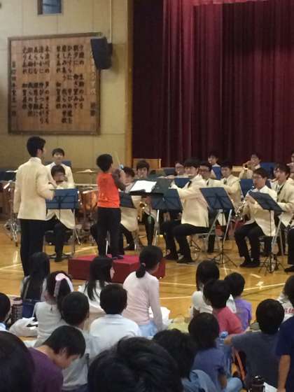 楽しかった秋まつりもいよいよ終盤。吹奏楽の演奏会では「ドレミの歌」や「365日の紙飛行機」などの馴染み深い曲の演奏の他に、指揮者体験もありました。アンコールも含め、みんな生の演奏を楽しみました。