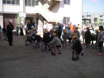 次に、防災訓練です。6年生は本部運営訓練に、1〜4年生は消防訓練に参加。5年生は、他の学年のこどもたちが頑張っている姿を見学し、カンパンの仕訳までしてくれました。今日の活動をきっかけに、減災や防災に関する意識を強く持ってもらえたらと思います。
