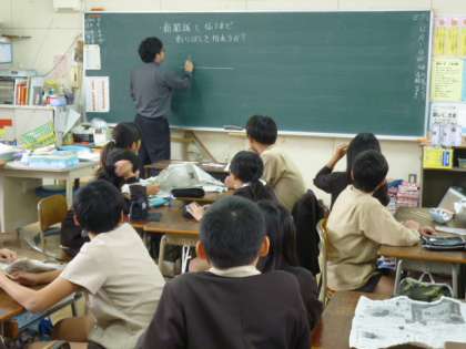 本日、加賀屋中学校から体育科と理科の先生に出前授業を実施していただきました。前に立っている先生が中学校の先生なので、、こどもたちの表情には緊張の色が、、。6年担任の先生もこのような機会はあまりないので、新鮮な気持ちでこどもたちを見ることができたのではないかと思います。
