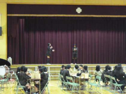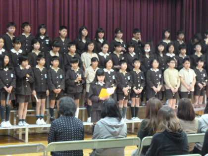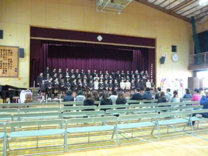 次は、第2部。ここでは、茶話会を「感謝の会」と呼び替えて6年間の思い出や教職員への感謝の気持ちを述べてくれました。その後は、歌と合奏の発表です。歌は、川嶋あいさんの「旅立ちの日に」です。先輩からの伝統を受け継ぐ、本当に素敵な歌声でした。