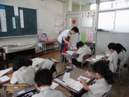 慣れない中、宛名の書き方や本文の書き方など、一生けんめいお話を聞いて暑中見舞いのはがきを仕上げました。はがきはお家に届くそうですので、素敵な1通が届くのをお待ちください。