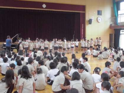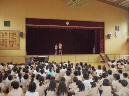 7月6日(木)、児童集会がありました。今回の集会は、「7月のお誕生日集会」と「かくし芸大会」でした。かくし芸大会では、なわとびやアカペラでの歌唱、ヒューマンビートボックスなど、自分の持ち味をみんなにアピールしていました。とても楽しく、盛り上がった集会となりました。引き続き、来週の集会もかくし芸大会です。誰が、どんなことをしてくれるのか、楽しみです。
