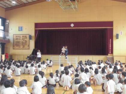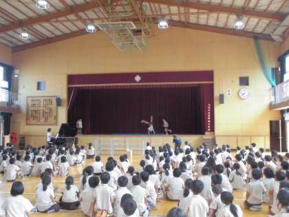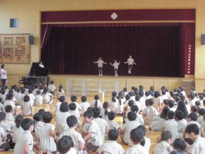 7月13日(木)、1学期最後の児童集会がありました。最後の児童集会は2回目の「かくし芸大会」でした。たくさんの児童が、かくし芸を披露しました。1年生は、一人で前に出てお笑い芸をやり、みんなを笑わせていました。2年生は、なわとびと体操を披露しました。すごく迫力がありました。