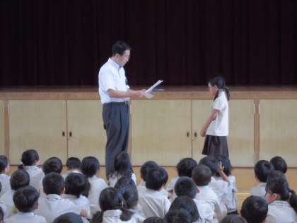 式に先立ち、先日「社会を明るくする運動」で表彰された児童の紹介がありました。