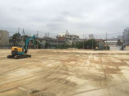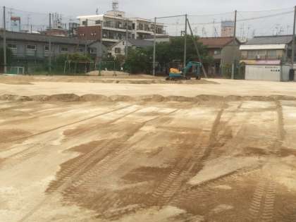 しばらくの間、ご不便をおかけしますが、お盆明けくらいにはきれいに整地された運動場がお目見えします。