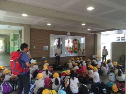 いつもより早い7時半に集合の後、出発式。5年 生全員を乗せたバスはハチ高原へ向かって走り出しました。