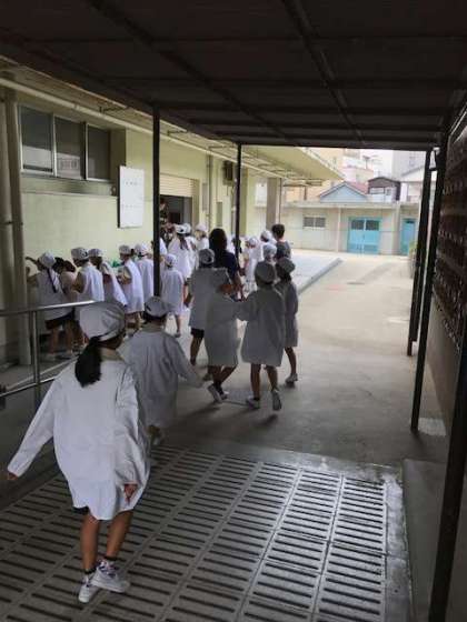 子どもたちは、久しぶりの給食を友だちと楽しそうに食べています。