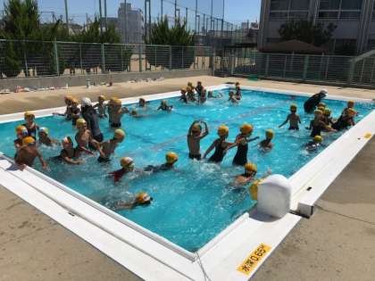 今日は、1年生がプール納め。いるかジャンプやじゃんけん列車などをして学習を振り返りました。